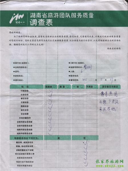 2011年5月27日胡先生一行6人旅游質(zhì)量反饋:導(dǎo)游熱情開(kāi)朗,下次過(guò)來(lái)還找她