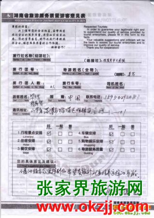 2010年3月30日山東張先生一行6人長沙張家界鳳凰旅游質(zhì)量反饋