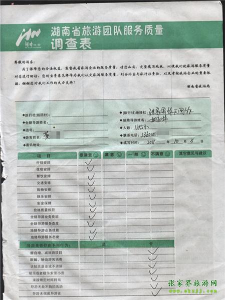 2011年10月5日黃先生一行17人旅游質(zhì)量反饋